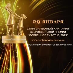 29 января организационный комитет Всероссийской Премии «Особенное счастье» открывает приём заявок на 2025 год. Родители детей с инвалидностью со всей страны, а также представляющие их организации включатся в работу на сайте www.osobennoeschastye.ru.