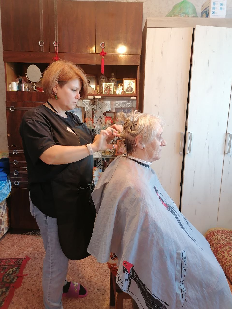 У парикмахера есть и особенные клиенты — пожилые люди, которые не могут передвигаться самостоятельно. Делать стрижки в таком случае непросто. Парикмахеру приходится проявлять все свое мастерство и изобретательность, чтобы привести в порядок волосы такого человека. Все жители остались довольны оказанной услугой!