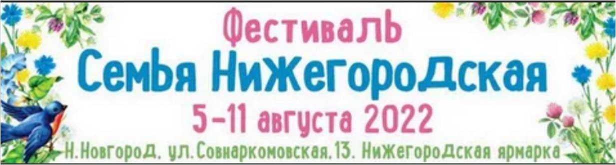 Информируем вас о том, что автономной некоммерческой организацией «Межрегиональный центр социально-культурного развития «Доверие» при поддержке Правительства Нижегородской области в период с 5 по 11 августа 2022 г. в г.Нижнем Новгороде на базе ВЗАО «Нижегородская ярмарка» проводится фестиваль «Семья Нижегородская» (далее – Фестиваль).