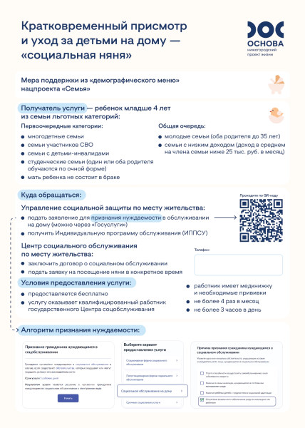 Кратковременный присмотр и уход за детьми на дому - "социальная няня".