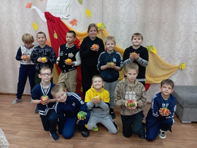 В интеграционной мастерской "Познавайка" дети занимались росписью гипсовых шкатулок в форме тыквы